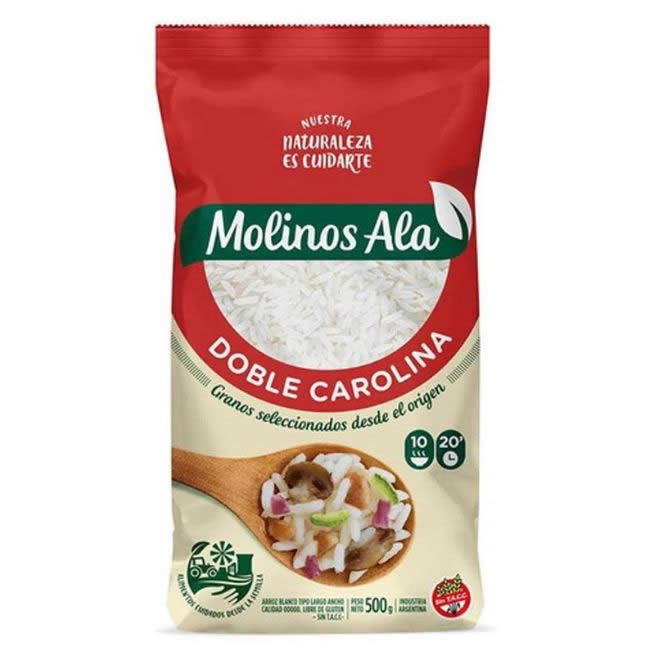Arroz Doble Carolina Molinos Ala X 500 Grs X 10U $13040,27 Código: 10930 Categoría: Arroz y Legumbres Etiqueta: Sin Tacc Información adicional Marca Información adicional CODIGO DE BARRAS 7791120021565 Consideraciones Sin Tacc Marca MOLINOS ALA Productos relacionados Código: 1467 Jugo De Naranja 100% Exprimido Citric X1L $2126,99 Código: 201 Mostaza Dánica Doypack X 220Grs $697,23 Código: 854 Arroz Doble Carolina Gallo x 1kg x 10u $31771,82 Código: 1433 Hamburguesas Paty Clasico X4U $3488,28